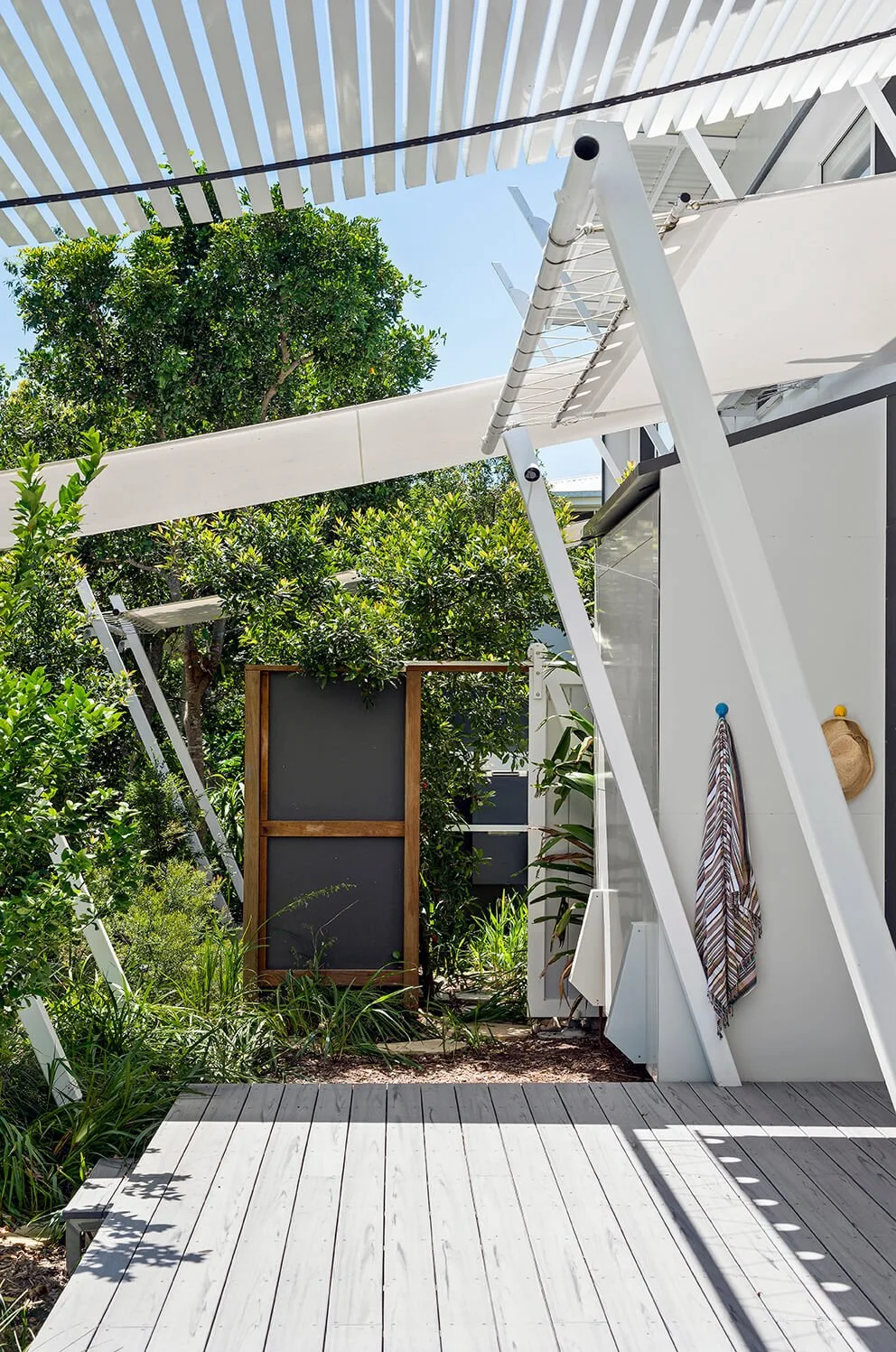 Stradbroke House was designed in collaboration with Gabriel and Elizabeth Poole and built with a clever group of fabricators. Our client wanted a holiday home on South Stradbroke Island where she can enjoy time with friends and family, especially her four grandsons who she wanted “to experience uncomplicated but comfortable camping.”